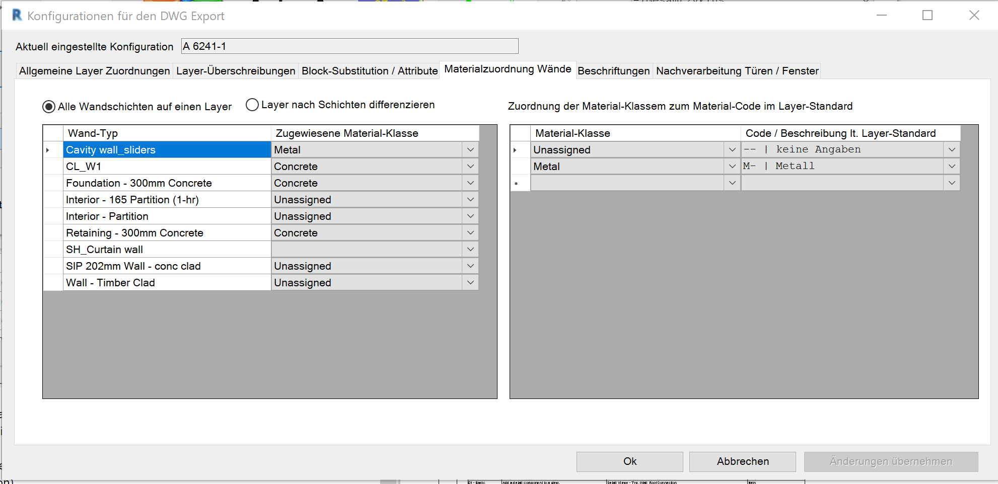 Kodierung von Materialinformation im Layer für Wände
