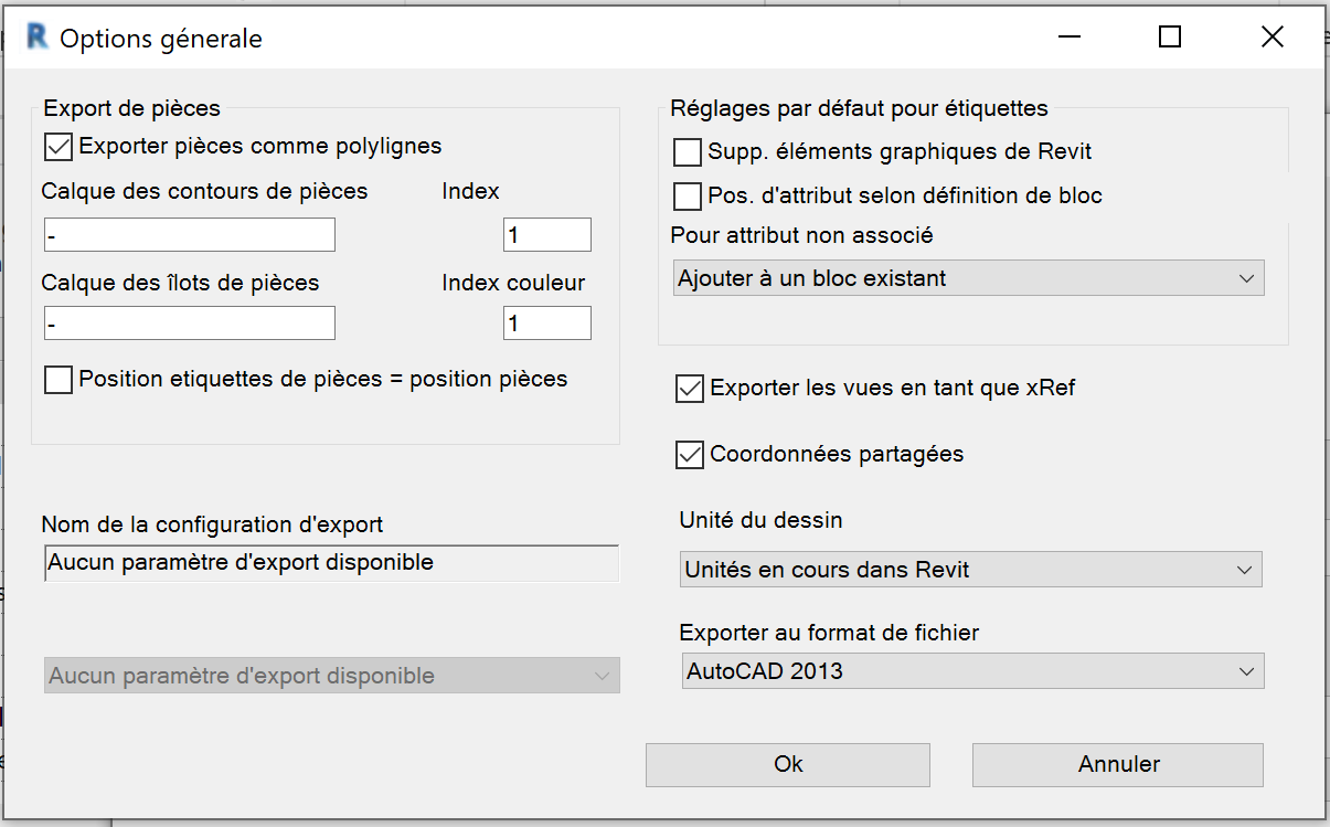 Revit permet d’exporter des fichiers DWG géoréférencés en utilisant les coordonnées mondiales (également appelées “coordonnées partagées”) uniquement pour les vues.